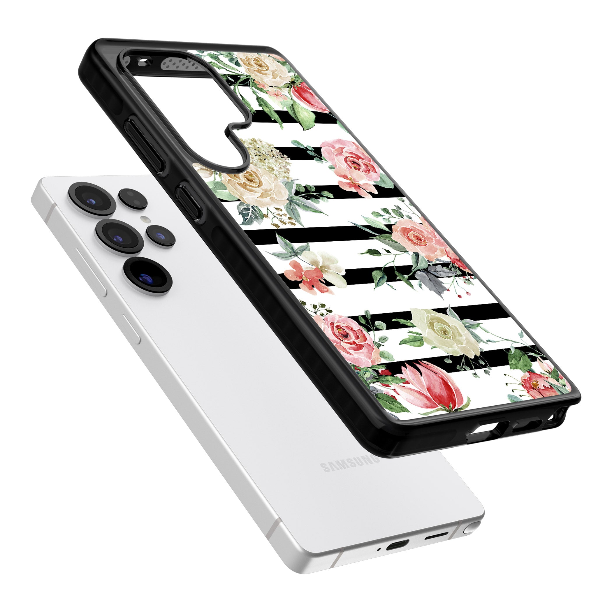 Balance boldness with beauty in this exquisite Floral Stripes Phone Case. Perfect for those who flaunt their phone as a style statement, it blends protection with a garden of elegance.