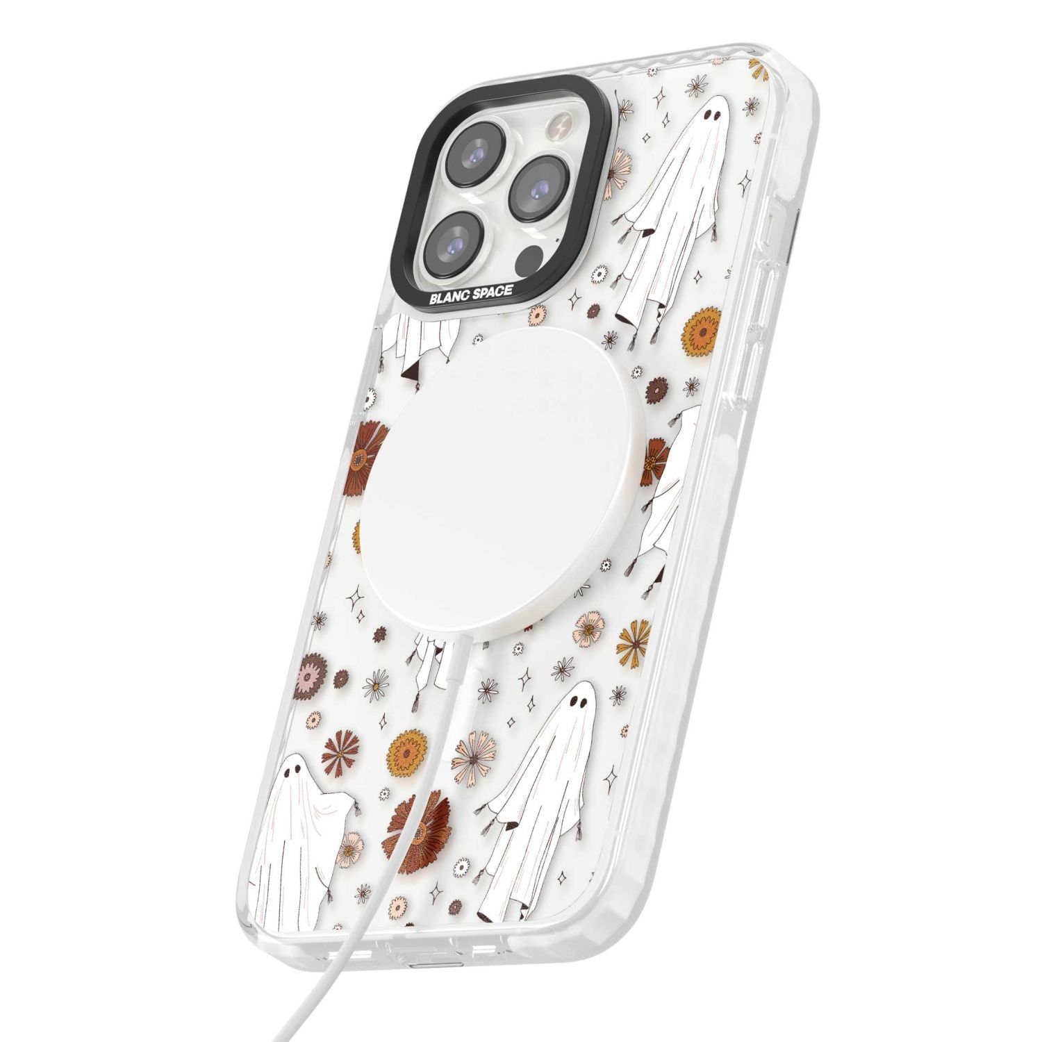 Embrace the playful spirit of Halloween with this charming ghost and floral phone case. Perfect for those who love a touch of whimsy in their style.