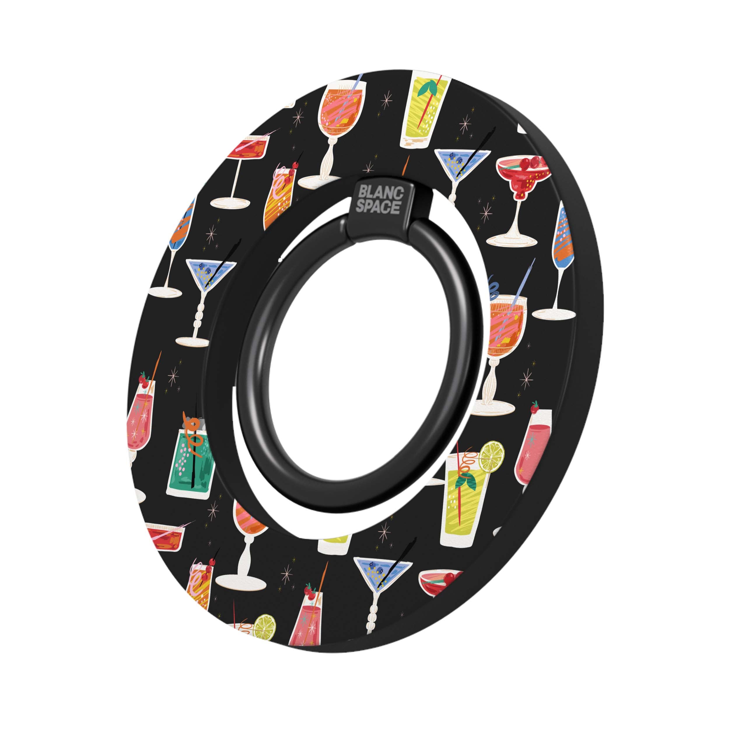 Sips, Sparkles, And A Little Bit Of Chaos. This Grip Is Covered In Colourful Retro Cocktails On A Jet Black Background, Complete With Atomic-Style Sparkles For Extra Flair. It’S A Full Wrap With No Transparency, And The Black Base Ring Ties The Whole Vibe Together For A Night-Out Aesthetic. Snaps Magnetically To Any Magsafe-Compatible Iphone Or Case, And Doubles As Both A Rotating Grip And Hands-Free Kickstand. Available In Black, White, Pink, And Light Blue Base Colours.
